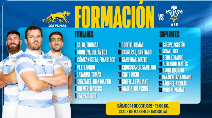 Con dos cambios, Los Pumas confirmaron la formación para medirse con Gales