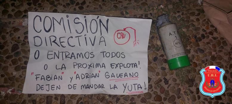 Colocaron una granada y dejaron una nota en la puerta de la sede de Unión