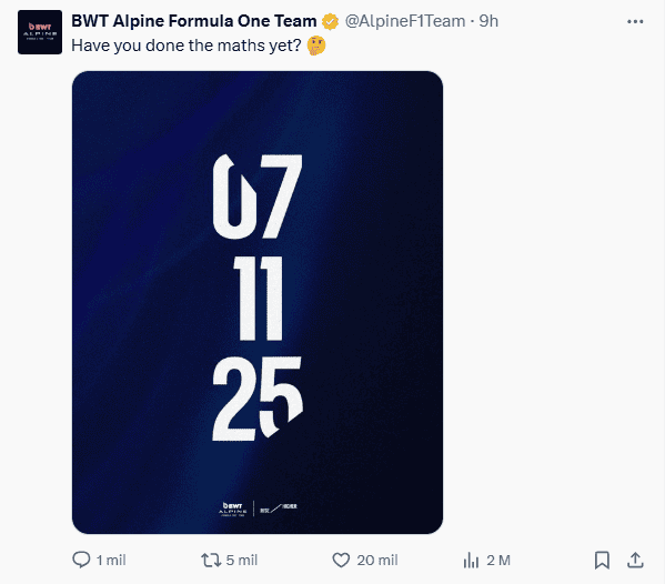 En las últimas horas, en el Instagram de la escudería subieron una foto que anunciarían que antes de la primera práctica realizarían el anuncio. La publicación fue acompañada de la frase “¿Ya hicieron los cálculos?” y un emoji pensativo, y se cargó de comentarios pidiendo por la confirmación de que el pilarense correrá en la máxima categoría durante un año más.