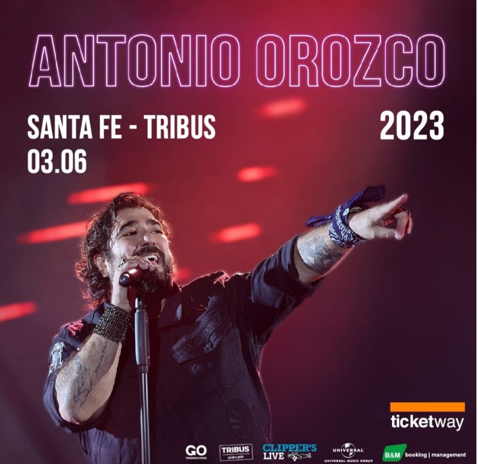 Antonio Orozco se presentará en Tribus Club de Arte el sábado 3 de junio a las 21 hs. Las entradas están a la venta en la boletería de Tribus (miércoles a domingo de 18 a 00 hs) y a través del sistema Ticketway y sus puntos de venta (online y físicos)