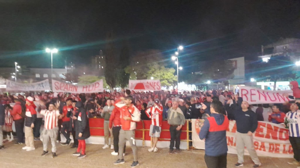 La convocatoria, que estuvo a cargo de filiales y peñas para “exigir respuestas claras”, fue a las 20 horas sobre avenida López y Planes frente al ingreso a la sede social del Tatengue. Allí, un centenar de simpatizantes exigió con cánticos y banderas la realización de una asamblea para aprobar Memoria y Balance y que se resuelva el inconveniente con las inhibiciones. Además, cuestionaron la falta de refuerzos de jerarquía y la partida de jugadores que fueron claves en las últimas campañas.