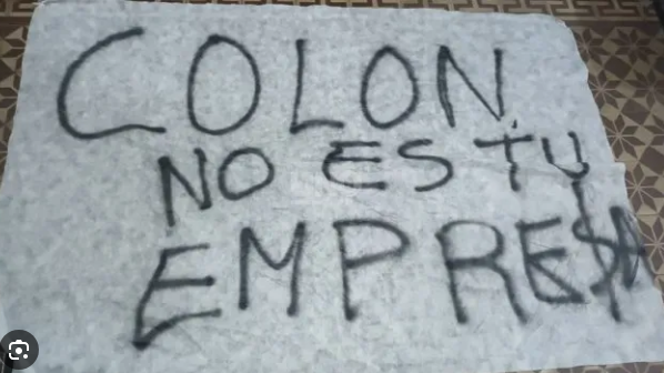 Unas tres banderas con mensajes intimidatorios fueron colocados esta madrugada en el frente del domicilio del presidente de Colón, José Vignatti, en el barrio de Guadalupe.