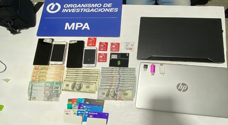 En los allanamientos fueron secuestrados celulares, notebooks y otros dispositivos tecnológicos y dinero en efectivo (pesos, dólares y reales).