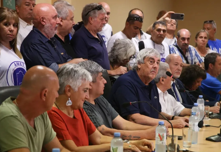 La medida de fuerza de los sindicatos del sector agrupados en la CGT, como UDA, AMET, SADOP y CEA. Se concertó luego de que fracasó la reunión con el Gobierno.