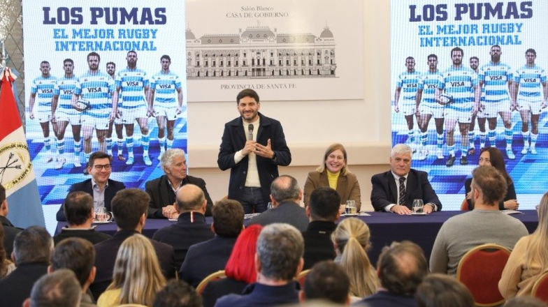 El gobernador Maximiliano Pullaro, acompañado por el presidente de la Unión Argentina de Rugby, Gabriel Travaglini, presentó oficialmente el partido por el Rugby Championship entre Los Pumas y Australia que se disputará el sábado 7 de septiembre en el estadio Brigadier López de la ciudad de Santa Fe.