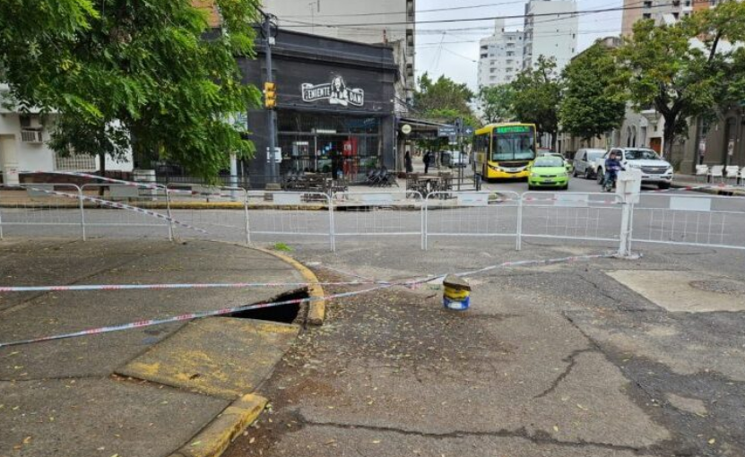 El desmoronamiento se generó mientras un hombre iba caminando por el cantero central de la Avenida y desde aquel momento se está trabajando en la zona para arreglar el hundimiento pero con el transito interrumpido.
