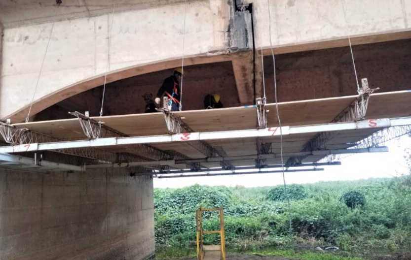 Las tareas forman parte del cronograma de obras de recuperación del Puente Carretero, que contempla entre sus pasos continuar con la intervención en la zona de la junta y tablero afectado, donde se ubica el puente Bailey de emergencia. Cabe recordar que en este lugar se avanzó con el montaje del andamio colgante para permitir el desarrollo de los trabajos reparación.