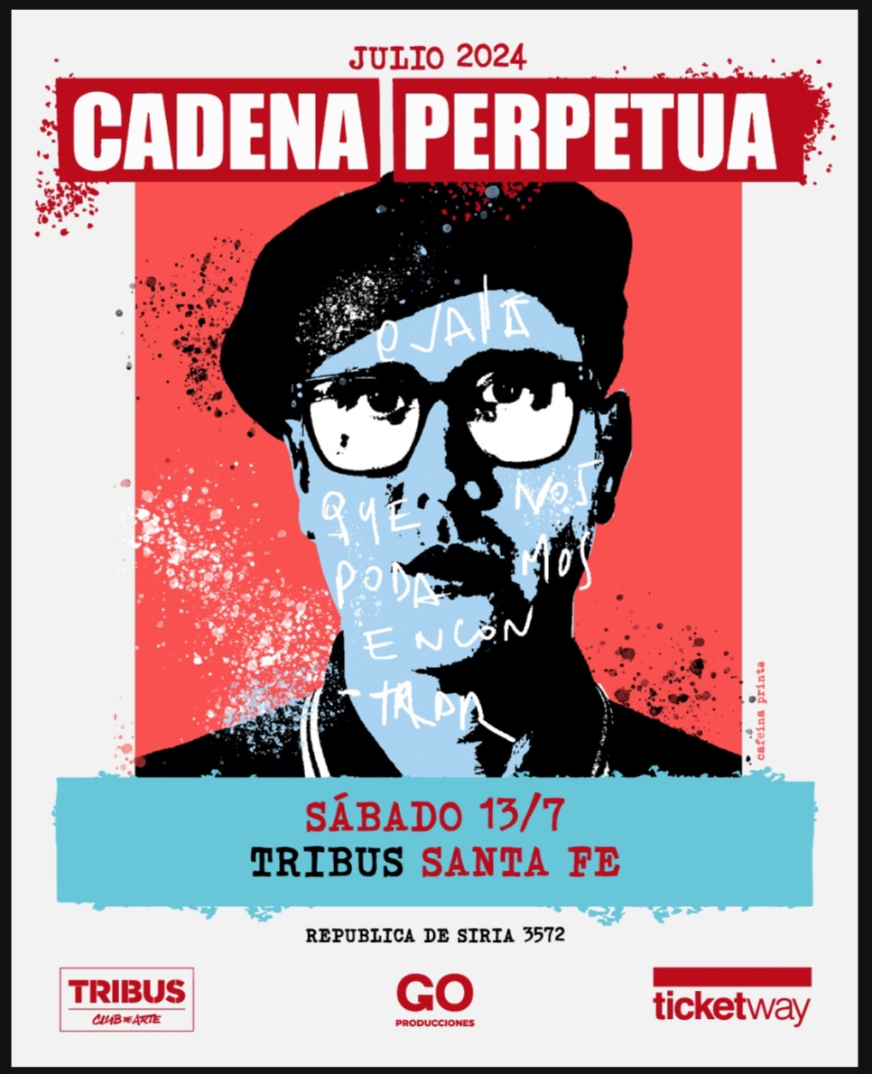 Cadena Perpetua se presentará en Tribus Club de Arte el sábado 13 de julio a las 21 hs. Las entradas están a la venta en la boletería de Tribus (miércoles a domingo de 18 a 00 hs) y a través del sistema Ticketway y sus puntos de venta (online y físicos)