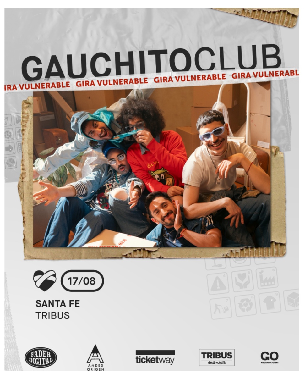 En el marco del tour presentación de su tercer disco de estudio, "Vulnerable", que será publicado el 14 de junio, Gauchito Club regresa a Tribus el sábado 17 de agosto a las 21 hs. El grupo mendocino se embarca en una gira nacional, precedida por seis presentaciones sold out en diferentes ciudades españolas.