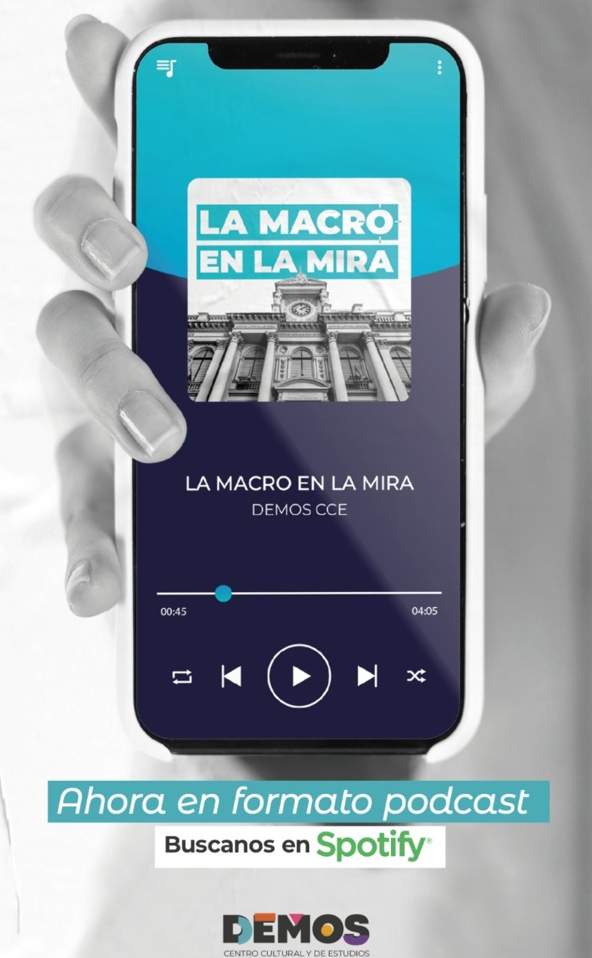 El Centro Cultural y de Estudios DEMOS estrenó hoy un podcast con información macroeconómica. Se trata de un nuevo formato para difundir el informe “La Macro en la Mira”, que mensualmente analiza la situación económica en Argentina a partir de indicadores macroeconómicos clave.